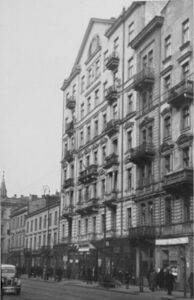 Szare karakuły, najwyżej cenione i najdroższe z tego rodzaju futer, należały do Haliny Berman, właścicielki „pracowni sukien”, mieszczącej się w połowie lat 30. na ul. Marszałkowskiej 62, a wkrótce przed wojną przeniesionej do istniejącego do dziś nowoczesnego, modernistycznego domu na ul. Koszykowej 31[10]. Prowadzenie interesu krawieckiego w takiej okolicy musiało budować specyficzną, głównie kobiecą społeczną sieć sąsiadek, klientek i pracownic. W 1939 r. Halina Berman wyszła za mąż za Michała Chajkina, od 1936 r. posiadającego uprawnienia adwokackie[11]. Para zamieszkała niedaleko, w mieszkaniu Chajkina na ul. Marszałkowskiej 94, zatrzymała też dotychczasową służącą prawnika, Polkę Marię Tywonek. Zarówno w wykazie warszawskich adwokatów, jak i spisach abonentów telefonicznych jest to jedyny adres Chajkina, można więc zakładać, że tam mieściła się też jego kancelaria[12].